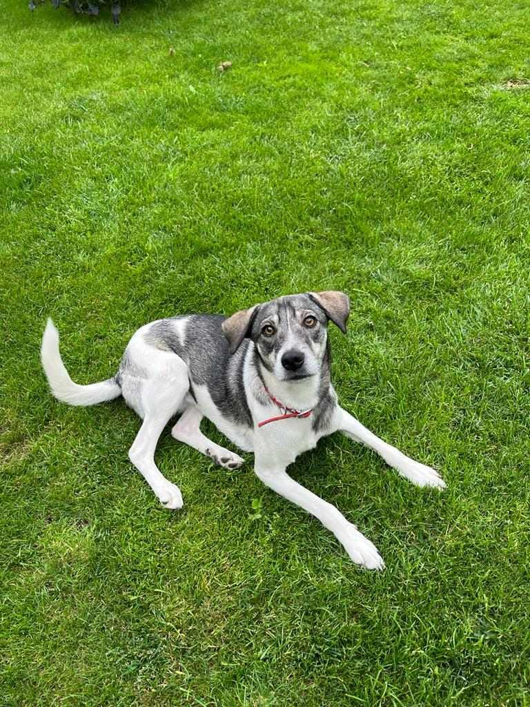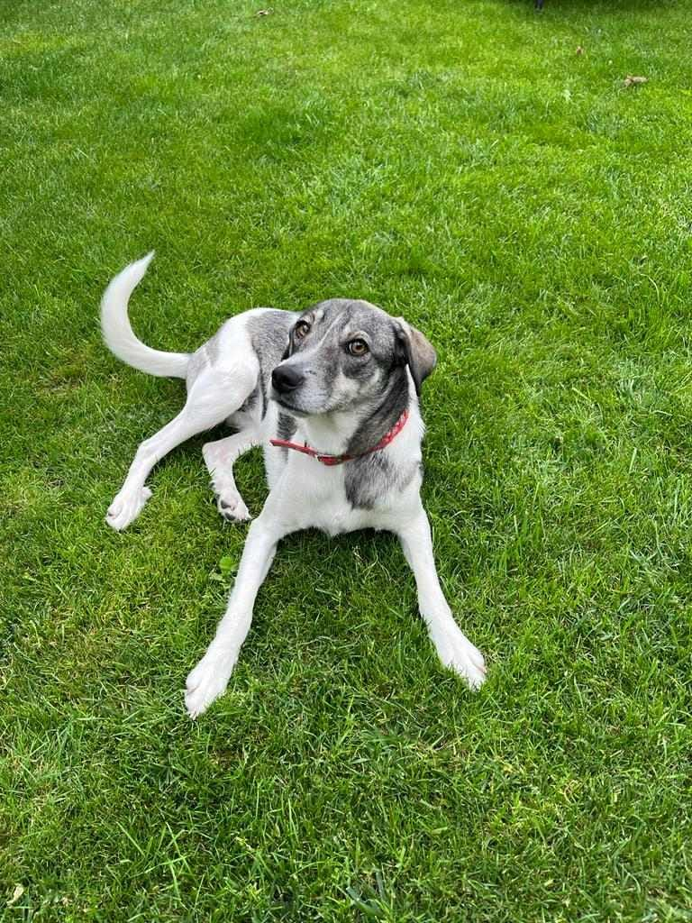 Sie kommt mit ihrem Handicap bestens zurecht, rennt oft durch den Garten als wäre nichts und ist weiterhin eine lebensfrohe, absolut liebe und aufgeschlossene Hündin, die menschliche Zuwendung sehr genießt.